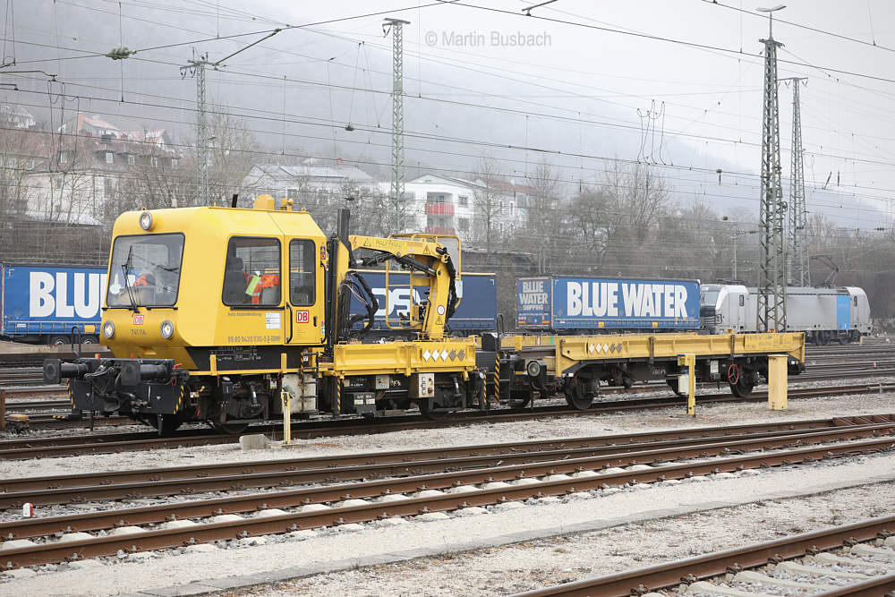 | 99 80 9 420 030-5 D-DBMP (741 114) mit Anhänger 99 80 9 750 367-1 D-DBMP (771 769) Gleisarbeitsfahrzeug GAF 100 R DB InfraGO AG, Maschinenpool, Berlin ex 97 17 50 003 18-0 GAF 100 R Herst. GBM 1996/52.1.102 Treuchtlingen, 22.01.2026 Foto: Martin Busbach |